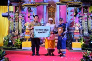 Palembang — Wujud nyata komitmen Pemerintah Daerah Banyuasin dalam memberikan dukungan terhadap kebebasan beragama serta pembangunan sarana ibadah bagi seluruh masyarakat tanpa terkecuali, mewakili Bupati Banyuasin, Sekretaris Daerah Banyuasin, Ir. Erwin Ibrahim, ST,. MM., MBA., IPU., ASEAN.Eng menyerahkan Sertifikat Hibah Tanah Pembangunan Pura Segara seluas 7000 meter persegi yang akan dibangun di Desa Bangun Sari, Kecamatan Tanjung Lago, Kabupaten Banyuasin.